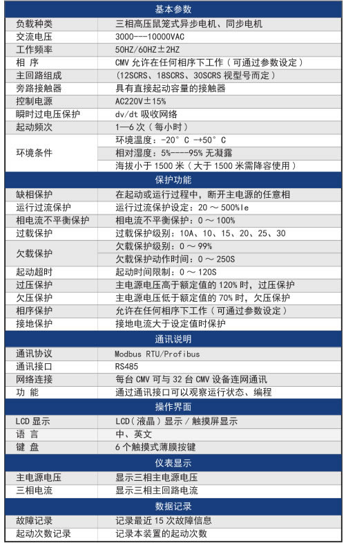 CMV系列高壓固態軟起動裝置/高壓軟起動器技術特性: